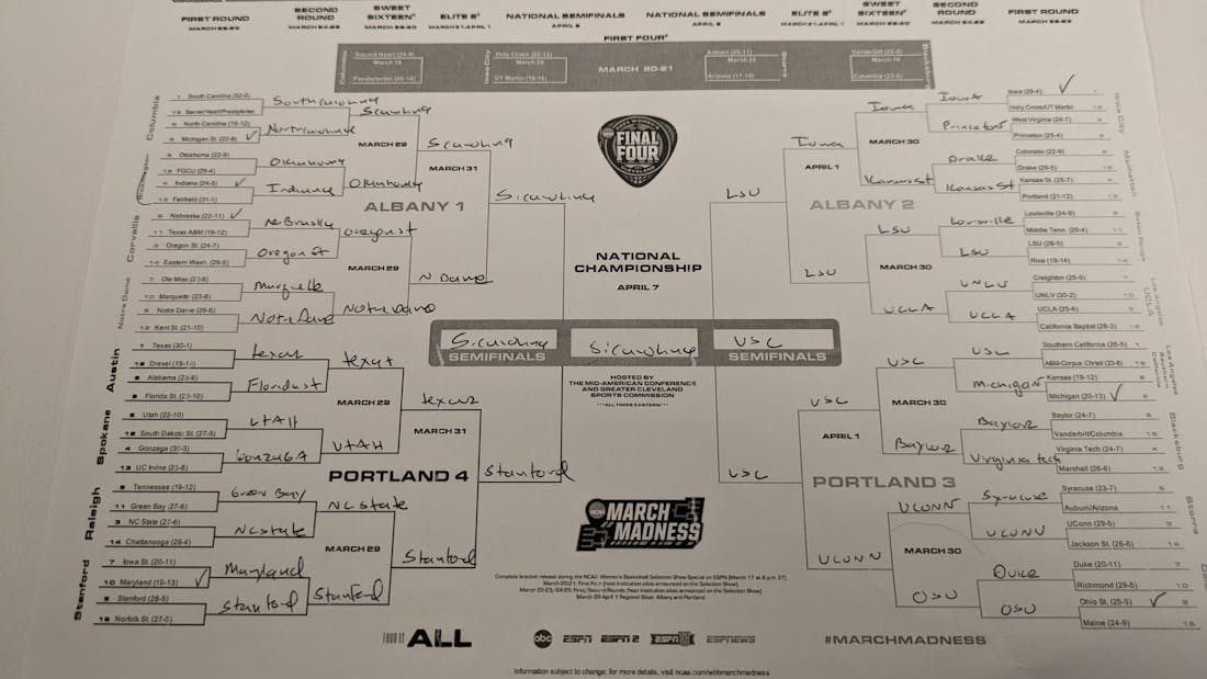 NCAA women’s basketball tournament bracket. Kent Youngblood’s